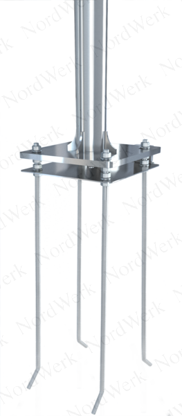 ✔ мачта из цельной трубы с усиленным откидывающимся основанием из нержавеющей стали с закладным крепежом