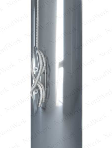 На флагштоке PRO Inox Стандарт флаг закрепляется карабинами к петлям шнура и поднимается/опускается с помощью перебора шнура. После подъема/опускания флага шнур фиксируется морским узлом на кнехте из нержавеющей стали. Вершина флагштока украшена декоративным навершием Euro Top.
