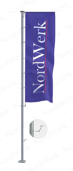 На флагштоке PRO Inox Супер Баннер опускание и поднимание флага осуществляется с помощью опускаемого баннерного плеча (баннер лифта), прикрепленного к шнуру, который проходит внутри мачты флагштока.